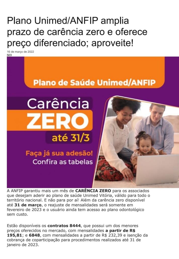 PLANO UNIMED /ANFIP AMPLIA PRAZO DE CARÊNCIA ZERO E OFERECE PREÇO DIFERENCIADO; APROVEITE!