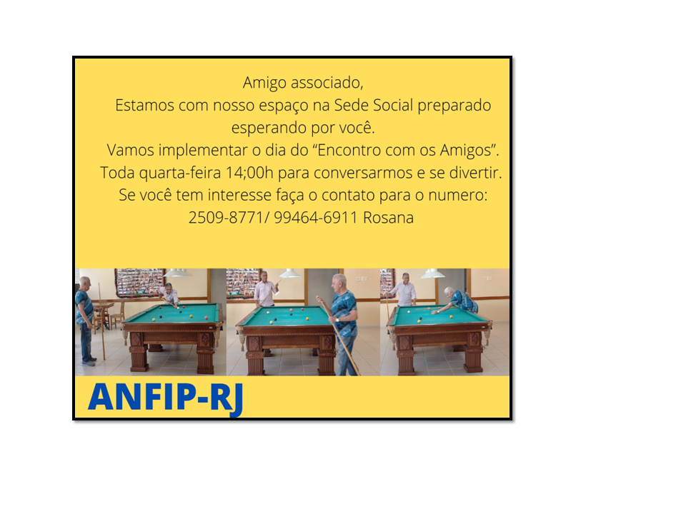 TODA QUARTA FEIRA AQUI NA ANFIP-RJ, DIA DO ENCONTRO. ESTAMOS ESPERANDO POR VOCÊ!