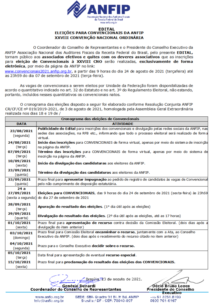 EDITAL ELEIÇÕES PARA CONVENCIONAIS DA ANFIP XXVIII CONVENÇÃO NACIONAL ORDINÁRIA