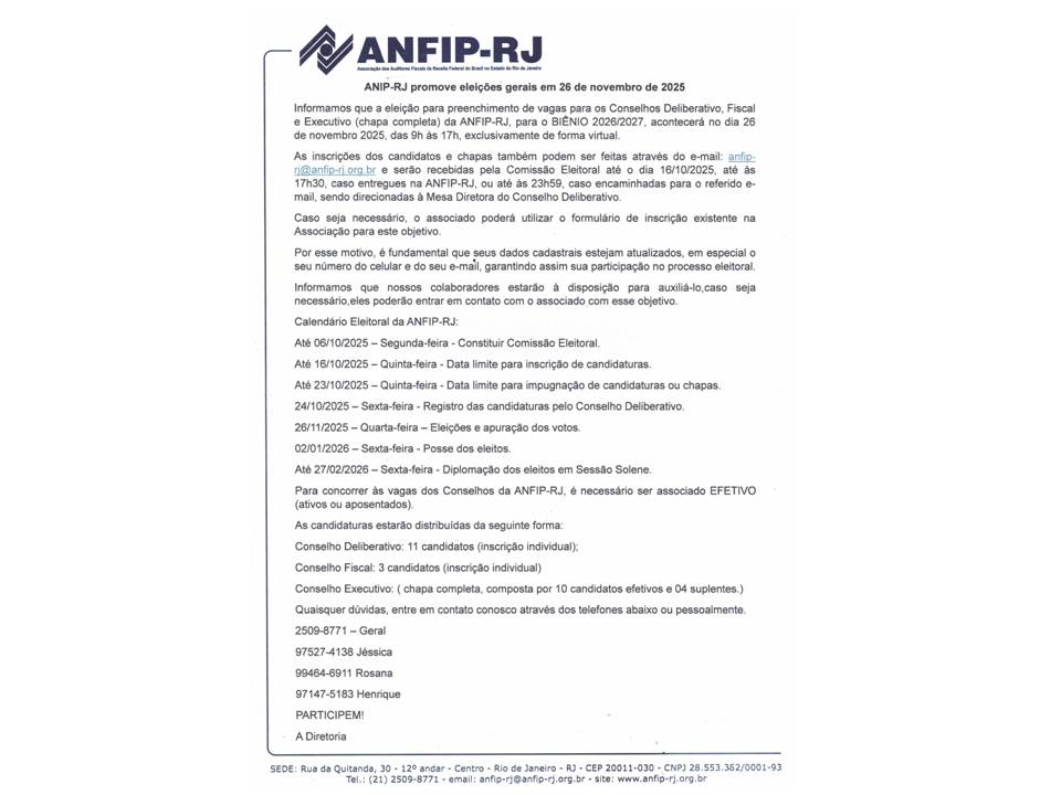 Eleição ANFIP-RJ / 2025