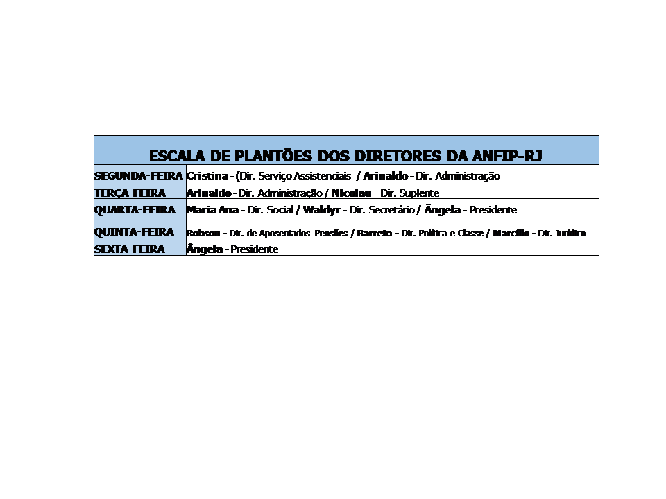 PLANTÕES DOS DIRETORES DA ANFIP-RJ.